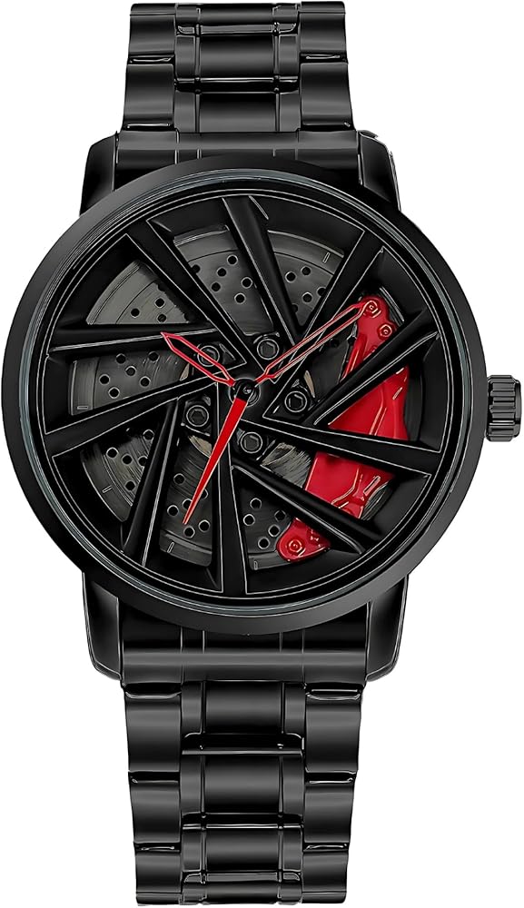 Built with highly durable, scratch-resistant sapphire crystal, this watch is designed to withstand everyday wear and tear. The bold black stainless steel case, intricate embossed metal internals, spinning gyro feature, and caliper detailing make it a true masterpiece.